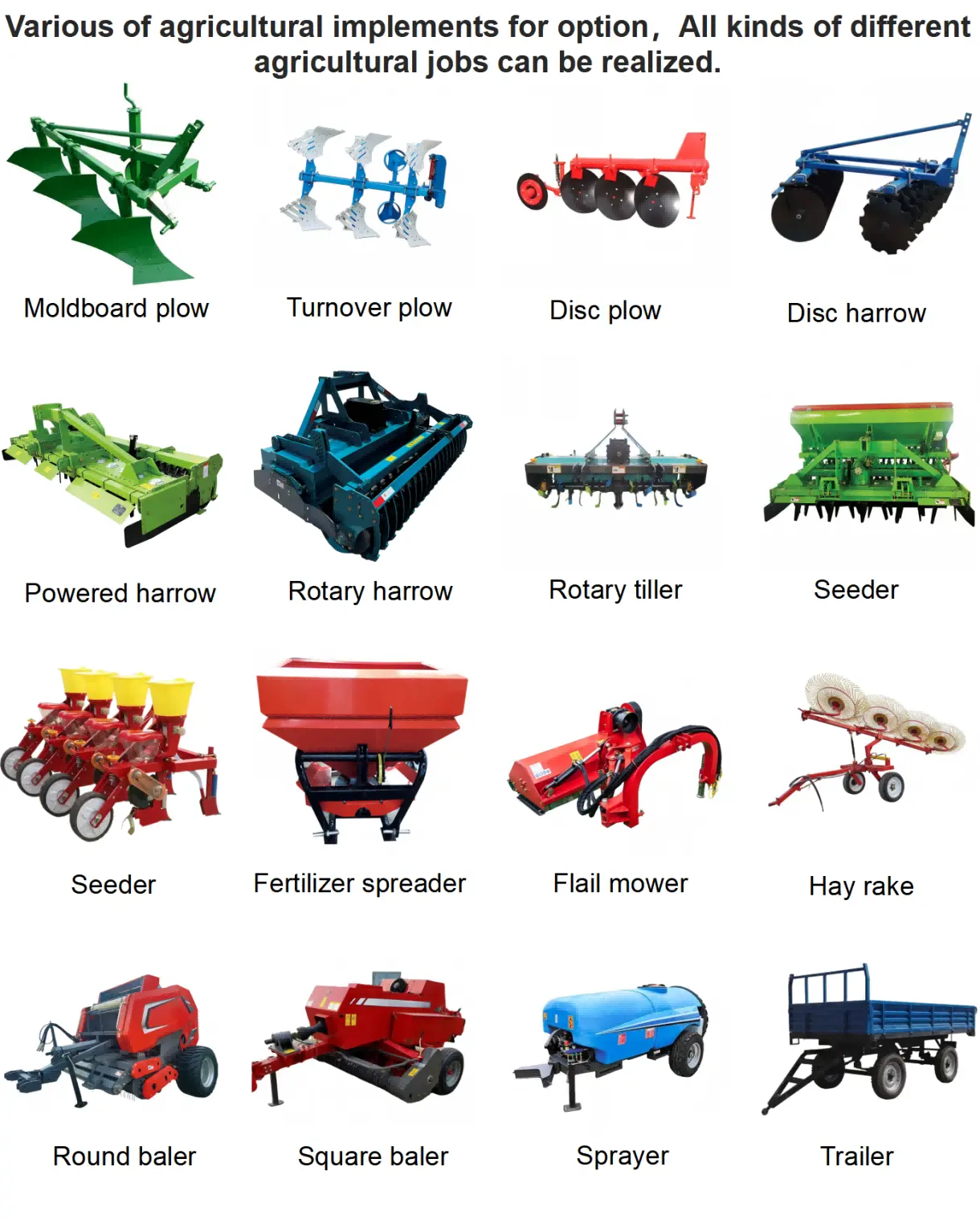 Заманауи ауылшаруашылық өндіріс жүйесінде тракторлар негізгі энергетикалық жабдық ретінде олардың толық әлеуетіне ғылыми және сәйкес келетін сүйемелдеумен ғана қол жеткізе алады.ауылшаруашылық құралдары. Нақты өндірістік қажеттіліктерді қанағаттандыратын ауылшаруашылық құралдарының жиынтығы егіншіліктің, егістің және егіс алқабын басқарудың бүкіл процесінің тиімділігін айтарлықтай арттырып қана қоймайды, сонымен қатар энергия шығынын және жабдықтардың тозуын азайтады, осылайша фермерлер үшін жоғары пайда әкеледі.